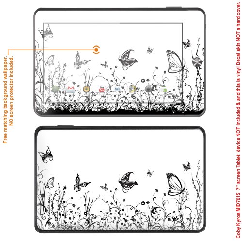 PLEASE READ before purchase! The Skin gives your device a new look & is absolutely UNIQUE. Skins not only give your device a great new look, they also offer great protection! Our skins use high quality vinyl, the vinyl specially made for automobiles making the skin easy to apply without air bubbles & leaves NO residue if you decide to change to another style.The skin's images are protected with a special clear layer laminate for ultimate in durability, NO FADE guarantee. Precision cut to match the size of your device. Our skins come with complete, easy to follow instructions to help you apply it properly, it will take about 2-5 minutes to apply it yourself NO tools needed. Our skins enable you to safely customize the look of your device without voiding your warranty! what you see is what you get! Image color may vary from item shown depending on your monitor settings. WHAT YOU WILL RECEIVE: front & back skins in MAtte finish. These are VINYL SKINS THAT ARE APPLIED DIRECTLY ON TOP OF YOUR DEVICE, These are vinyl skins NOT HARD COVERS . Coby Kyros MID7015 7-Inch tablet DEVICE NOT INCLUDED and ONLY FIT Coby Kyros MID7015 7-Inch.WARNING NOTES: ** CHECK PRODUCT RECEIVED BEFORE APPLY SKINS TO YOUR DEVICE TO DECIDE IF YOU WANT A REFUND. IF YOU APPLY SKINS TO YOUR DEVICE YOU FORFEIT THE RIGHT TO A REFUND. *** SHIPPING: This is Amazon Marketplace shipping policy, STANDARD shipping: seller has 2 business days to send out and take from 3 to 5 working days to deliver, TOTAL: up to 8 working days. If you have any questions about the product please send us an email before purchasing. Installation guide & wallpaper information included with the package.