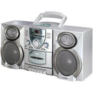 - COBY CXCD400BLK MINI AM/FM/CD/CASSETTE RECORDER WITH DETACHABLE SPEAKERS.
