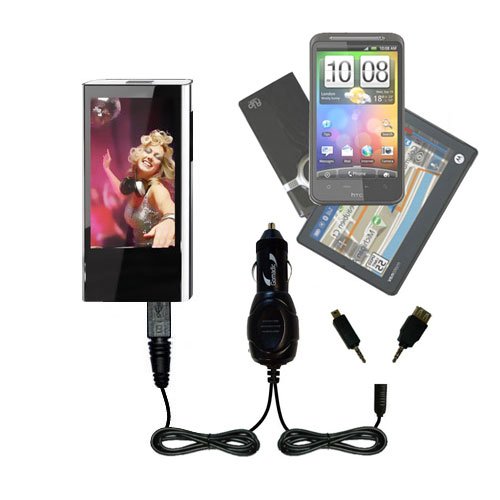 Split The Differences. Travel In Peace. No more arguments about whose device takes priority: whether you're on a road trip with your sales team or taking the family to the beach; Gomadic's Coby MP826 Touchscreen Video MP3 Player Rapid Dual Car Charger makes traveling fun again. Compatible with Gomadic's innovative TipExchange Technology that works with thousands of mobile devices; the Coby MP826 Touchscreen Video MP3 Player Dual Charger gives you limitless options for charging your tech on the go. Simply leave the charger intact and rotate your tech by plugging in the removable tips that are custom-made for all your devices. Just lock; load; and shuffle without any hassle or worse. Unleashing that tangle of superfluous wires that pollutes your travel space. Imagine a streamlined road trip where everyone gets what they want and you'll see the Coby MP826 Touchscreen Video MP3 Player Dual Charger resting confidently in your car's cigarette lighter. Take a business call or listen to a podcast while your son conquers Mars on his Play Station; and never run out of juice. No more cheap; single-purpose chargers falling from your car door. No more complex strategies for stretching power to the next destination. Split the differences by powering five; ten? two hundred? devices with one premium; fully functional cord and a few high-quality tips.Specifically designed to meet the proliferating and often contradictory needs of nomads across the globe; Gomadic brand Coby MP826 Touchscreen Video MP3 Player Dual Charger also allows you to charge double the devices in half the time; which translates to four times the power of shoddy; inefficient standard models. Take multitasking to the next level and enjoy all the versatility without sacrificing the high output wattage.